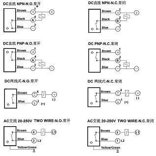 7)有的廠商將接近開關(guān)的“常開”和“常閉”信號同時引出,或增加其它功能,此種情況,請按產(chǎn)品說明書具體接線。
