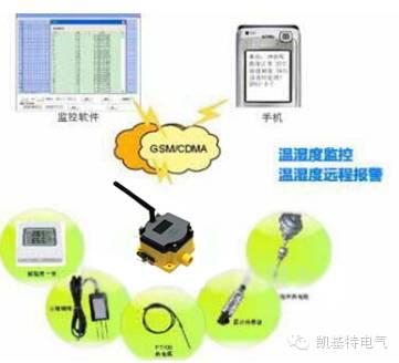 凱基特無線測控終端采集溫濕度數據、進行閥值判斷,一旦超出設定的正常范圍,立即發(fā)送報警短信。