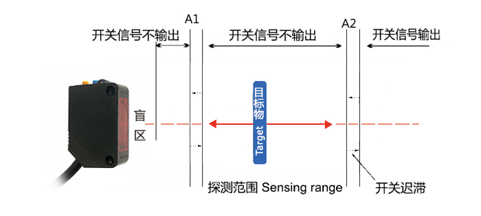 與依靠光量反饋檢測(cè)物體的傳統(tǒng)光電開關(guān)比較,使用TOF技術(shù)的KJT-FG30的光電傳感器有如下優(yōu)點(diǎn): 1:定位更精準(zhǔn) 2:減少物體表面顏色、弧度、環(huán)境等引起的干擾影響 3:最高可達(dá) 1000 Hz 的開關(guān)頻率 4:可穩(wěn)定檢測(cè)透明物體。 5:不受太陽(yáng)光影響,可戶外使用。 6:實(shí)現(xiàn)更遠(yuǎn)的檢測(cè)距離(漫反射*遠(yuǎn)可達(dá)4 m!是市場(chǎng)上絕無(wú)僅有的激光光電傳感器) 7:便捷易用的操作方式,使得普通型號(hào)仍能快速進(jìn)行兩個(gè)開關(guān)點(diǎn)的設(shè)置   (1)傳感器內(nèi)部光源發(fā)送器發(fā)射脈沖激光光束 (2)測(cè)量 脈沖激光光束到達(dá)被測(cè)物體表面再反射回傳感器接收芯片 的時(shí)間差, (3)利用測(cè)得的時(shí)間差與光速的求出被測(cè)物距離(被測(cè)物距離=時(shí)間差*光速/2) (4)通過這個(gè)距離信息,光電開關(guān)便可判斷物體是否存在在設(shè)定的范圍內(nèi)