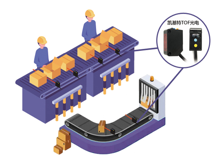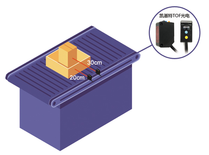 ▲一款產(chǎn)品搭建分支、合流搬運(yùn)線  ▲ 寬感應(yīng)距離,可用于各種輸送機(jī)線寬 以往,針對(duì)不同檢測(cè)距離需求,需配備不同的傳感器。但KJT-FG30具備30-4000mm的寬感應(yīng)距離,無(wú)需切換傳感器便可滿足不同感應(yīng)距離的需求。
