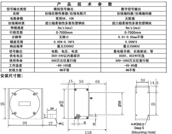 拉線位移傳感器可將機械位移量轉(zhuǎn)換成可計量的、成線性比例的電信號。當被測物體產(chǎn)生位移時,拉動與其相連接的傳感器繩索,繩索帶動傳感器傳動機構(gòu)與編碼器同步轉(zhuǎn)動;當位移反向移動時,傳感器內(nèi)部的自動回旋裝置將自動收回繩索,并在繩索伸收過程中保持其張力不變;從而輸出一個與繩索移動量成正比例的電信號。 傳感器具有獨立自動排線機構(gòu),保證拉伸繩自動均勻排線、保證傳感器具有高獨立線性精度和較長的傳感器使用壽命。