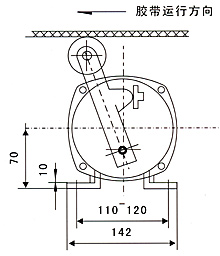 ●本裝置開(kāi)關(guān)轉(zhuǎn)換角度為20°,對(duì)有傾角的膠帶機(jī)可適當(dāng)調(diào)整安裝角度。